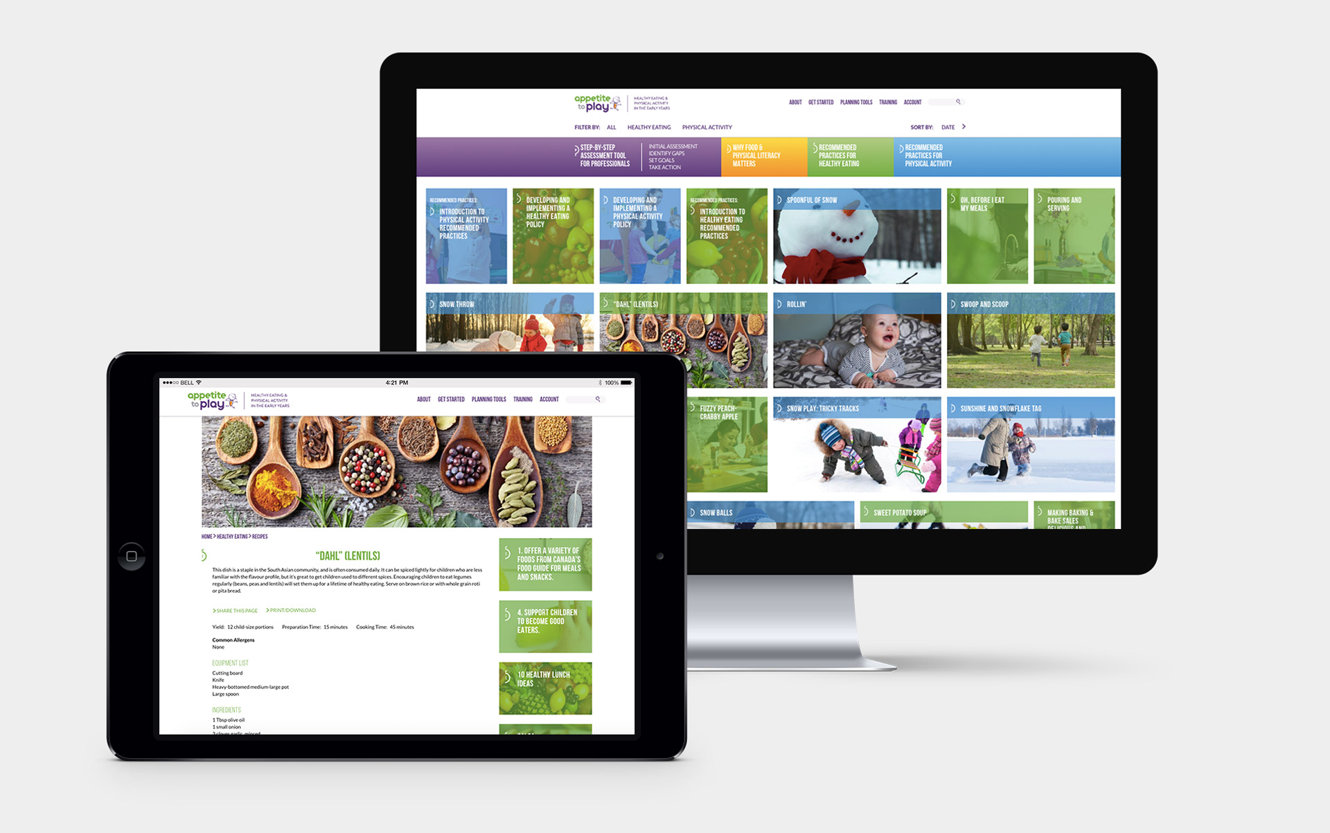 Appetite to Play was created as a fun browsable resource for early childhood educators. The website is a drupal based infinite scrolling site with live filtering categories.