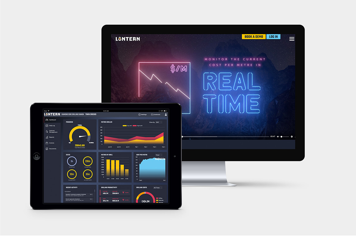 Lantern is a revolutionary app created for the diamond drilling industry that turns timesheets into business insights in real time. A full brand and marketing package was created to promote lantern including a website, video, tradeshow booth and digital advertising.